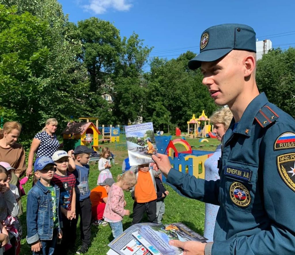 В рамках года 30-летия МЧС и 75-летия Победы сотрудники Управления по Московскому району совместно с Московского отделения Всероссийского добровольного пожарного общества с представителем СПб ГКУ «Пожарно-спасательного отряда противопожарной службы по Московскому району чтобы уберечь детей от возможной трагедии, сформировать у детей культуру безопасного поведения, в игровой форме, которая тесно переплетается с познавательным процессом проводятся профилактические беседы в детских садах района.