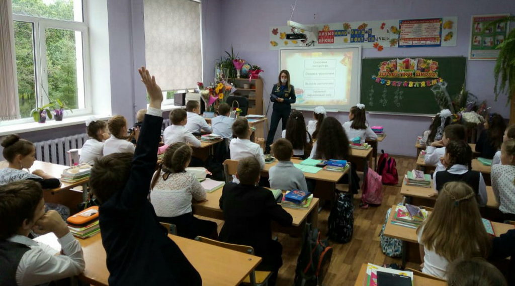 В рамках единого информационного «Дня пожарной безопасности» и «Дня знаний», сотрудниками ОНДПР — Шевцовой О.С., Козловым С.А., Якуниным Н.Н., Гильштейном Р.И., Красавиным Д.В., Стекольниковой Е.С. и др., совместно с ВДПО – Одарченко Н.В. и ПСО Петродворцового района — Сергеевым А.В., Лысак Л.Г. и др.) проведены тематические уроки по пожарной безопасности с учениками младших классов. В ходе беседы, учащимся напомнили номера вызова пожарной охраны с городских и мобильных телефонов, рассказали о правилах пожарной безопасности в школе и дома, а также действиях во время возникновения чрезвычайных ситуаций. Провели блицконкурс «Вопрос-ответ», при участии в котором дети вспоминают и систематизируют полученные знания.