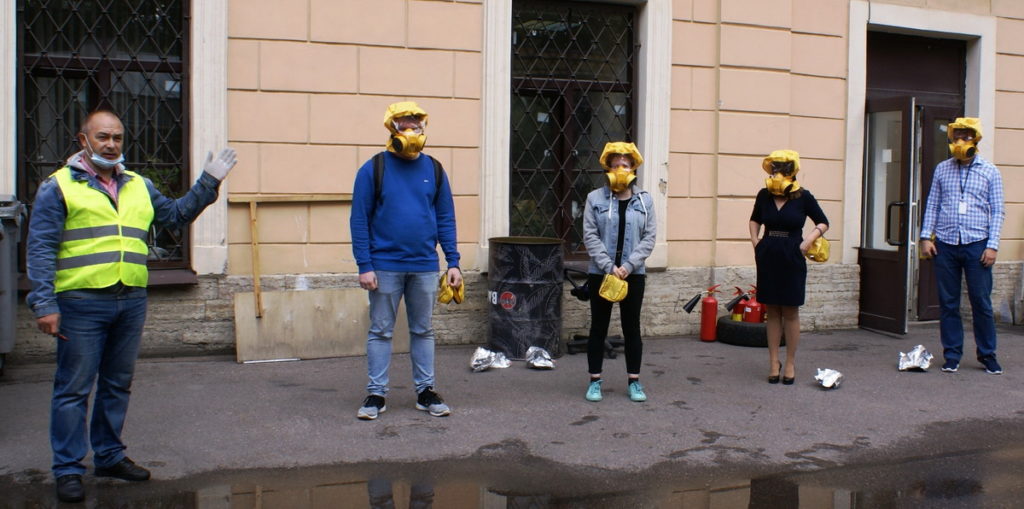 По легенде, в одном из помещений здания произошло возгорание. В ходе практического занятия, из здания в безопасную зону было эвакуировано более 200 человек. Эвакуировавшиеся уложились в расчетное время. Тренировка прошла успешно.