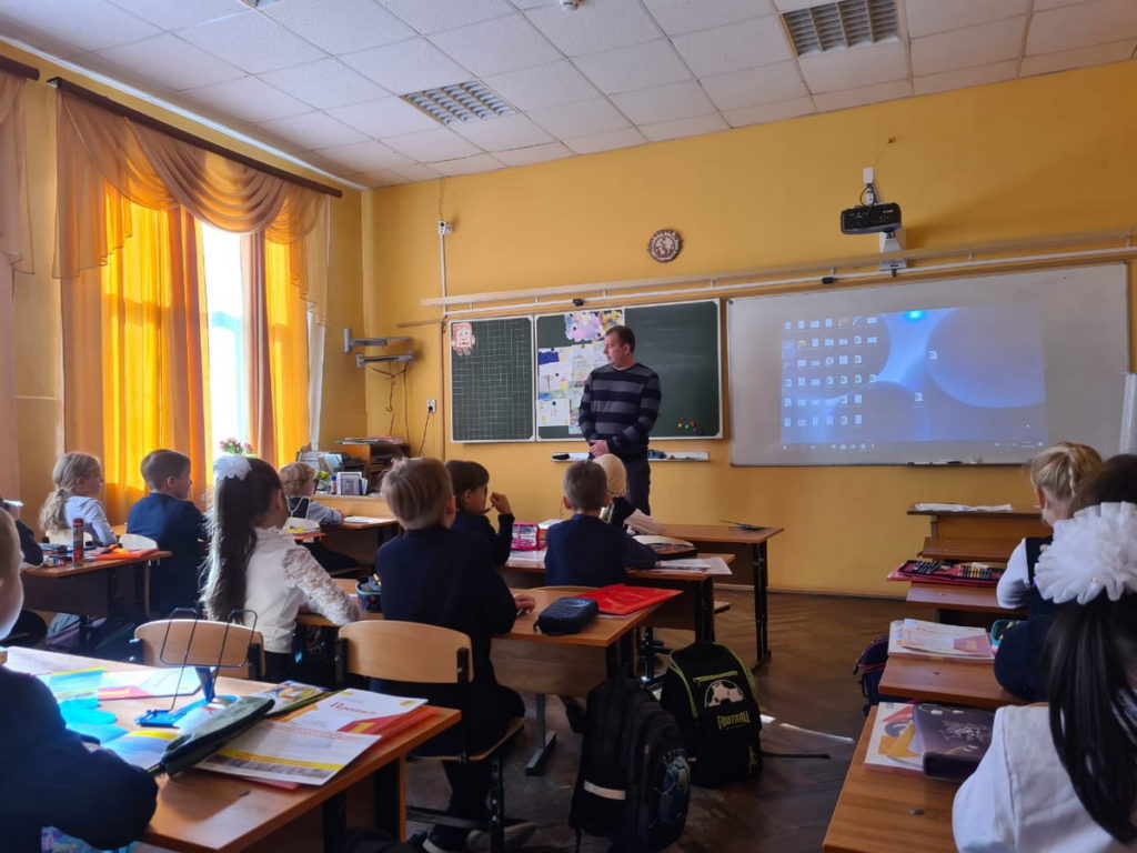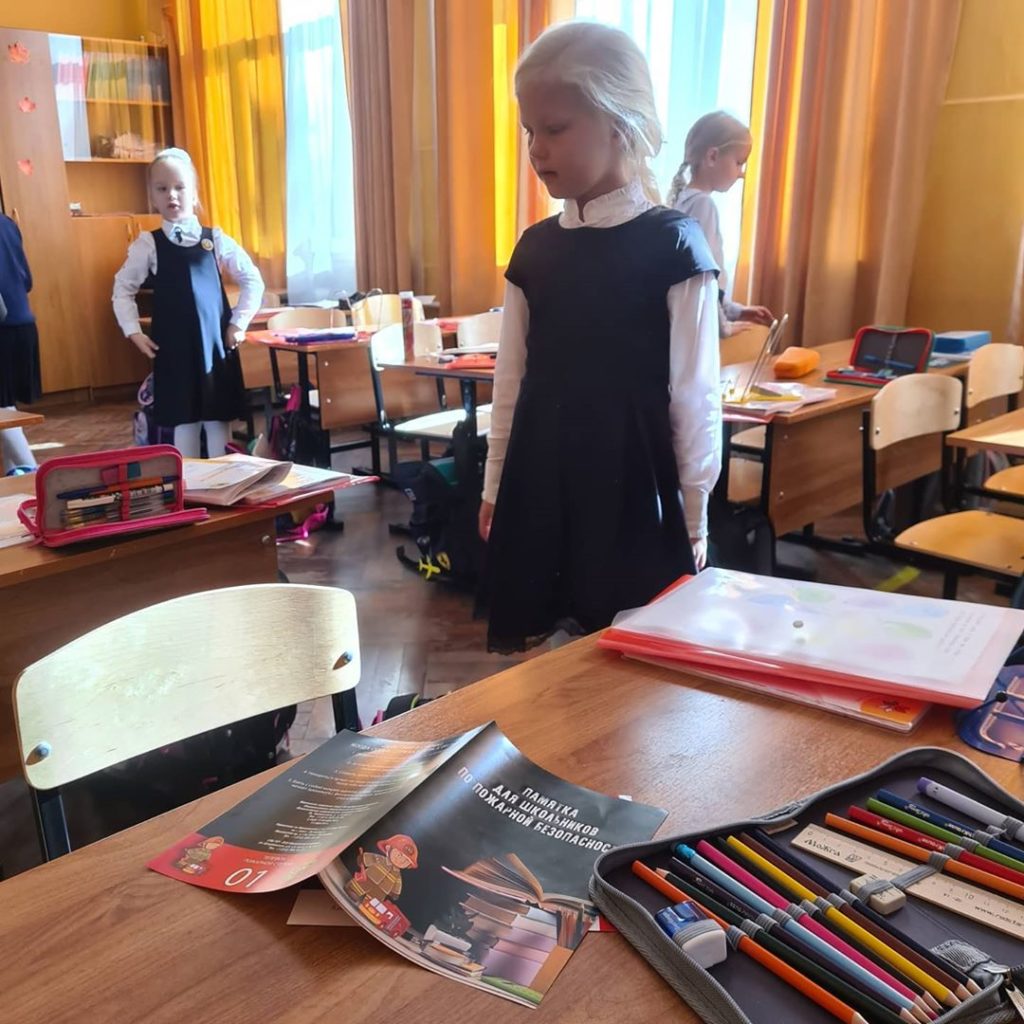 Начальник пожарной части (ПСО), Инструктор противопожарной части (ПСО) и специалист социально- орентированной деятельности ВДПО Московского р-на, провели познавательный урок Пожарной безопасности в 1 Б классе .