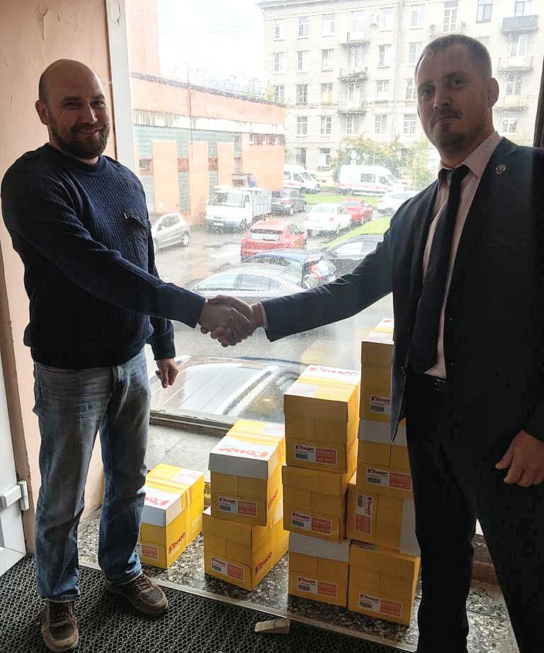 Заместитель председателя Сылка Александр Александрович передал бумагу для офисной техники формата А4 руководителю отдела материального обеспечения Поздееву Александру Александровичу, в свою очередь главный врач Бахолдина Марина Николаевна поблагодарила ВДПО за помощь и сотрудничество.