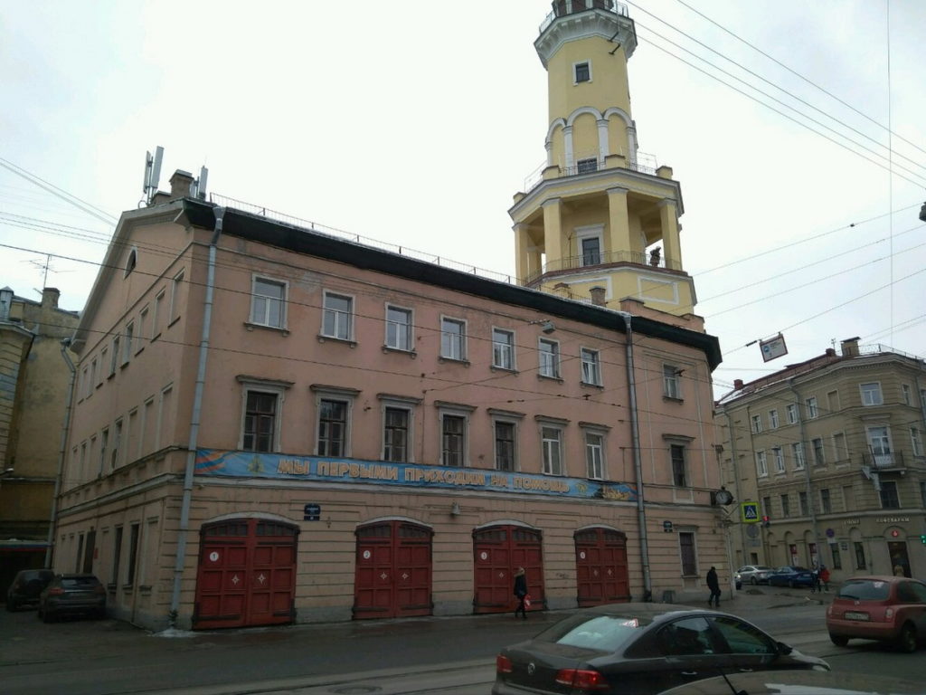 Особое внимание при проведении экскурсии было уделено истории 2-й пожарной части (Съезжий дом Спасской части). Это здание было построено на рубеже XVIII и XIX веков. Трехэтажный дом имеет симметричную композицию с фасадами, выходящими на две улицы. Угол здания венчает кирпичная восьмигранная каланча высотой 46 метров и в ней расположены три смотровые площадки, оборудованные металлическими ограждениями. Здесь постоянно несли службу дозорные, следившие за возникновением пожаров.