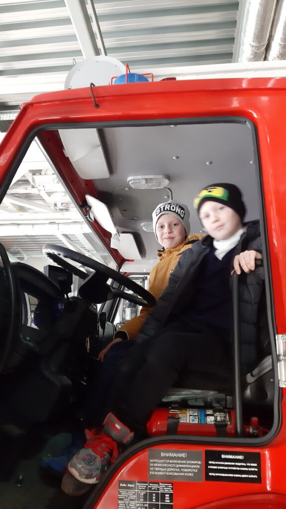 После урока безопасности учащихся ждала экскурсия по помещениям пожарной части, с демонстрацией пожарной и спасательной техники. Пожарные рассказали, о своем быте, о том какая техника стоит на вооружении в Кронштадте. Показали пожарные автомобили, рассказали о  выполняемых задачах, продемонстрировали спасательное оборудование, пояснив, в каких случаях оно применяется. Ребятам была предоставлена возможность побыть пожарным, посидеть в кабине автоцистерны и примерить боевую одежду пожарного.