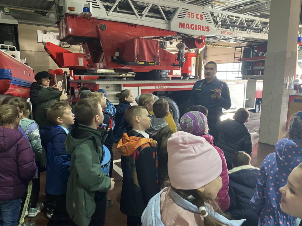 Традиционно перед экскурсией проведен Урок безопасности, на котором сотрудники рассказали детям, в чем заключается опасность игр с огнем дома и на природе, научили ребят, как правильно вызывать спасателей с городского и мобильного телефонов, рассказали об опасности, которую таят водоемы, а также о том, как правильно вести себя,  если беды не удалось избежать.