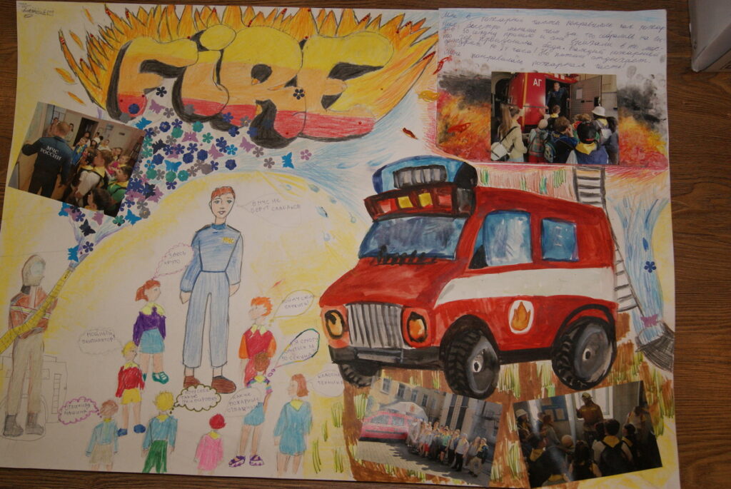 Во время первой смены городских лагерей дневного пребывания детей в Центральном районе проходил конкурс стенгазет «В гостях у пожарных». После посещения пожарно-спасательных частей детям предлагалось нарисовать стенгазеты, где они должны были разместить фотографии и написать о впечатлениях.