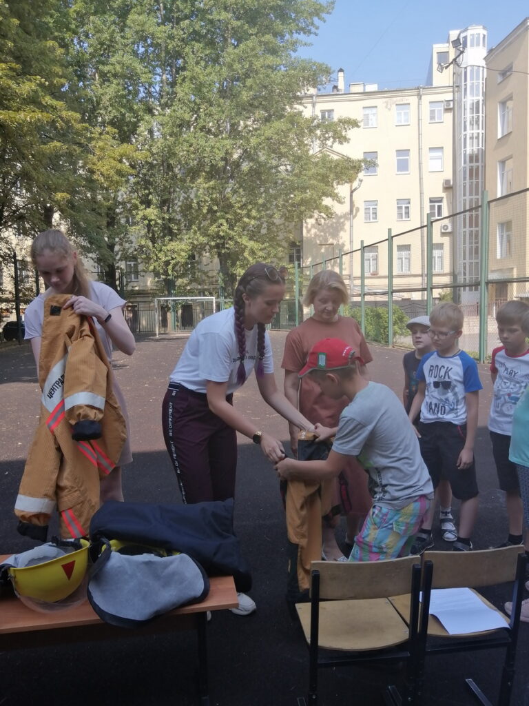 14 июля специалист по организационно-массовой работе Центрального отделения СПб ГО ВДПО Карпешина К. А. провела тренировки для 2х отрядов в этом лагере, для каждого отряда были проведены инструктажи и тренировки.