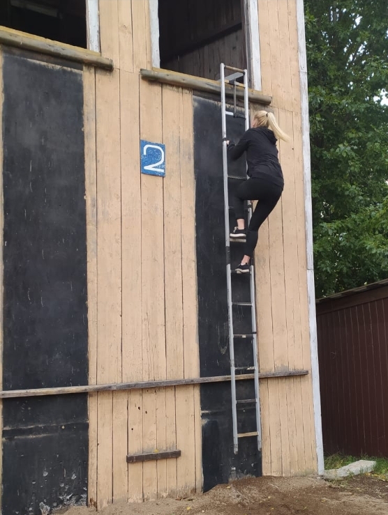 Преодоление 100 метровой полосы с препятствиями, прокладка рукавной линии и подъем по штурмовой лестнице на второй этаж учебной башни удались девчонкам и мальчишкам в этот холодный день на ура!