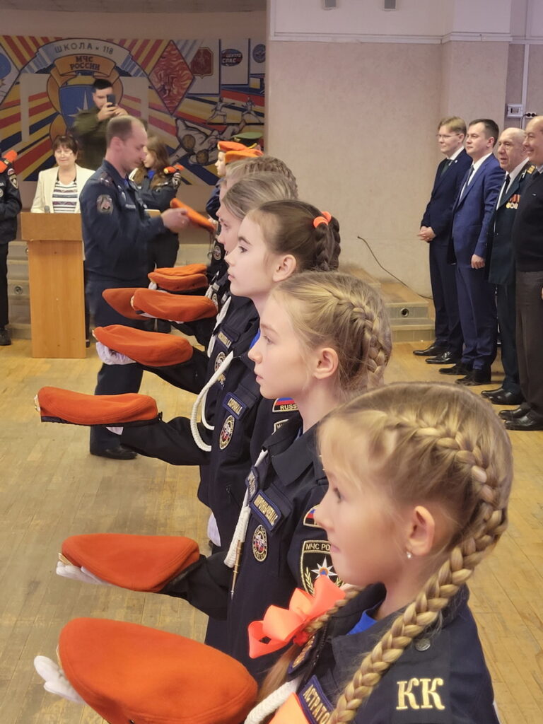 Школьников поздравили: директор ГБОУ СОШ №118 Выборгского района Федоров В.В.; председатель совета Всероссийского добровольного пожарного общества Выборгского района Беликов Я.В.; руководители Управления по Выборгскому району Главного управления ГУ МЧС России по г. Санкт-Петербургу и пожарно-спасательного отряда Выборгского района, а также заслуженный учитель школы № 118 – Ильенко А.А., много лет отдавший военно-патриотическому воспитанию учеников. Кульминационным моментом праздника стала торжественная клятва кадета МЧС. Затем подполковник внутренней службы Гусев Михаил одел кадетам оранжевые береты — отличительный знак кадета МЧС. Также ученикам кадетских классов активно участвующим и отличившимся в коллективно-творческих и спортивных мероприятиях, проводимых в районе были вручены заслуженные награды. Выступающие выразили уверенность, что кадеты будут продолжать славные традиции МЧС России, показывать хорошие и отличные результаты в учебе, принимать активное участие в общественной, спортивной и культурной жизни города.
