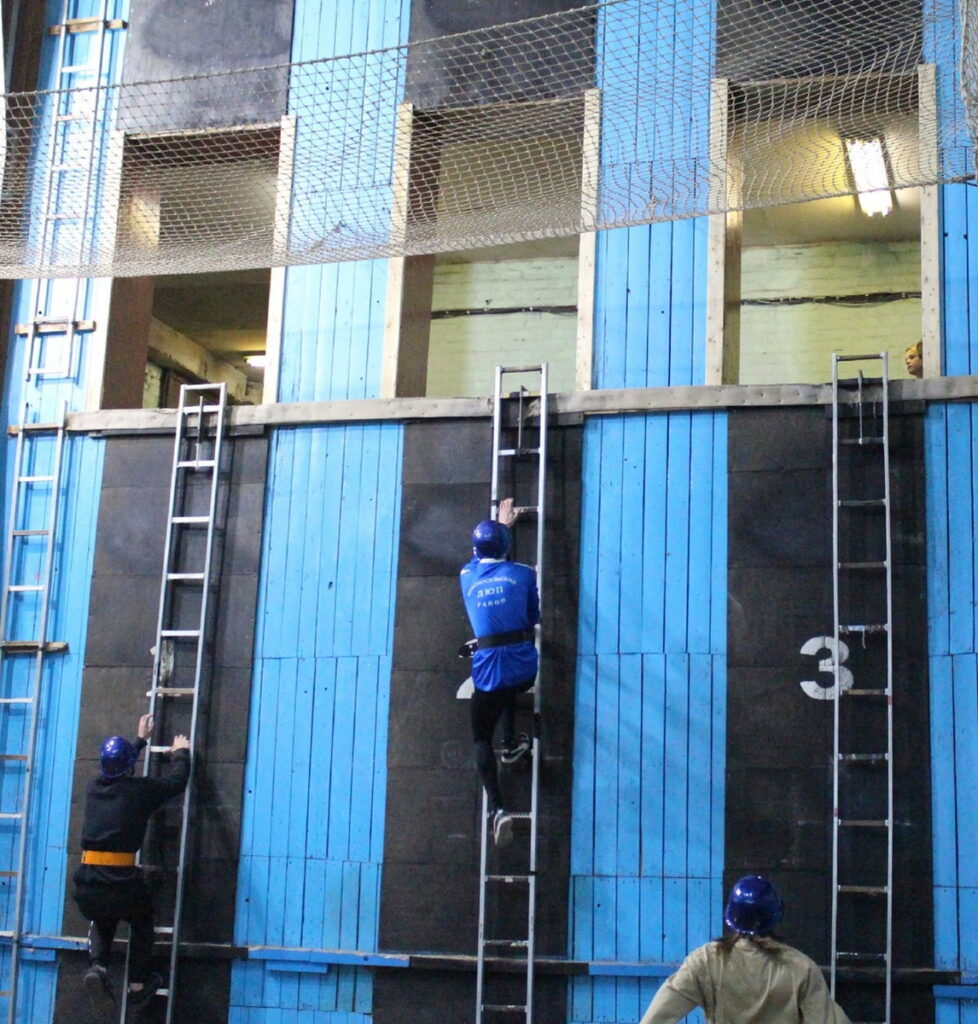 Красносельский район представили ДЮП ГБОУ СОШ № 262 и ГБОУ ЦО № 167. По программе соревнований юноши и девушки младшей и средней возрастных групп преодолевали полосу препятствий, а после поднимались по штурмовой лестнице на 2-й этаж учебной башни.