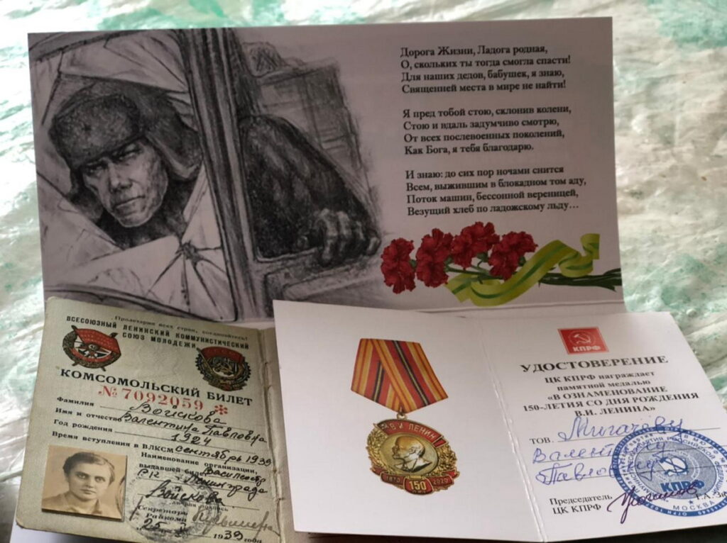 Однажды, во время дежурства, с Валентиной случилась история, которая сыграла судьбоносную роль и, в дальнейшем, спасла ее жизнь. Валентина заметила, что из окна соседнего дома вылетела ракетница, которая была направлена в сторону нашей военно-морской базы, в этот же момент немецкий самолет – разведчик кружил в небе над улицами осажденного Ленинграда. Валя поняла, что шпион показал самолету путь для дальнейшей бомбежки, она быстро побежала к военным морякам и предупредила о надвигающейся опасности. Командир принял меры и когда на следующий день немцы бомбили базу, то потери были минимальными, благодаря бдительности юной защитницы. После снятия блокады, когда Валя от истощения уже не могла передвигаться, не вставала с постели и не выходила из дома, командование той самой военно – морской части заинтересовались судьбой девушки и прислали офицера к дому, чтобы узнать «где тут девушка с большими, голубыми глазами?» – соседи показали на незапертую дверь. На следующий день, военные моряки переправили совершенно беспомощную Валентину через Ладогу в эвакопункт, а затем в госпиталь, расположенный в Угличе. Там же, в больничной столовой, где блокадников кормили специальным усиленным питанием, она познакомилась со своим будущим мужем – военным моряком из Ленинграда, который попал в госпиталь с ранением ноги и оказался за одним столом с Валентиной. После войны семья переехала в Петергоф, где Валентина Павловна работала в детских садах, была заведующей ясли-сада ПЗЧ. До последних дней она вела общественную работу в совете ветеранов, на встречах с детсадовцами и школьниками рассказывала о войне и блокаде. В пожарной части № 24 «17 ПСО ФПС ГПС» Валентина Павловна передала копии записей воспоминаний, документы военных лет.