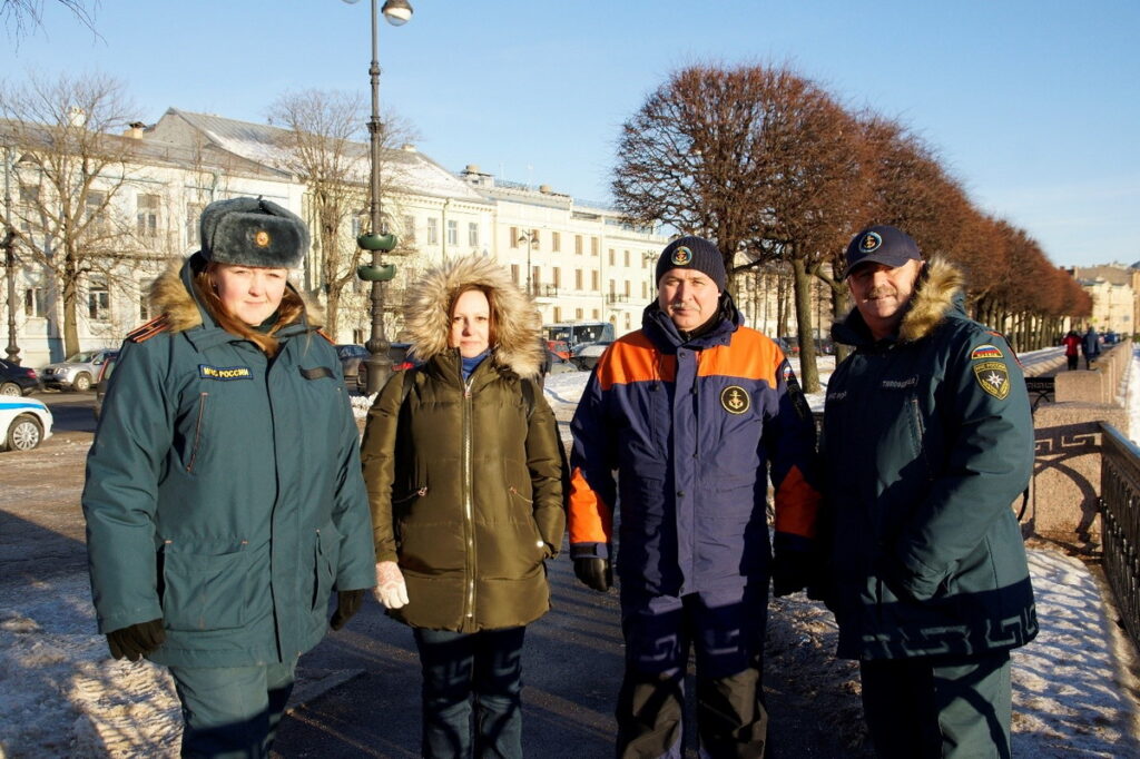 Возле проруби дежурили, проводили инструктаж по правилам поведения в проруби сотрудники комитета по вопросам законности, правопорядка и безопасности г. Санкт – Петербурга, Управление по Василеостровскому району ГУ МЧС России по СПб, СПб ГКУ « ПСО Василеостровского района», Василеостровское отделение СПб ГО ВДПО.