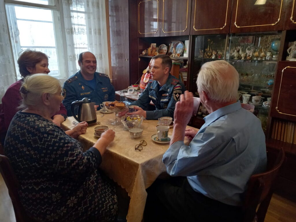 В памятный день, сотрудники МЧС России, ВДПО, ПСО посетили ветерана МПВО Остроумова Г.Г., 1929г.р, проживающего в Петергофе по адресу: ул. Братьев Гаркушенко. Специально для Генриха Георгиевича, ученик первого класса Егор Войтальянов записал видеоролик со стихотворением, посвященным подвигу солдат, которые прорвали кольцо блокады. За чашкой чая, ветеран, прочел стихи собственного сочинения, рассказал спасателям о смелости и героизме детей блокадного города, поделился воспоминаниями о службе в войсках местной противовоздушной обороны.