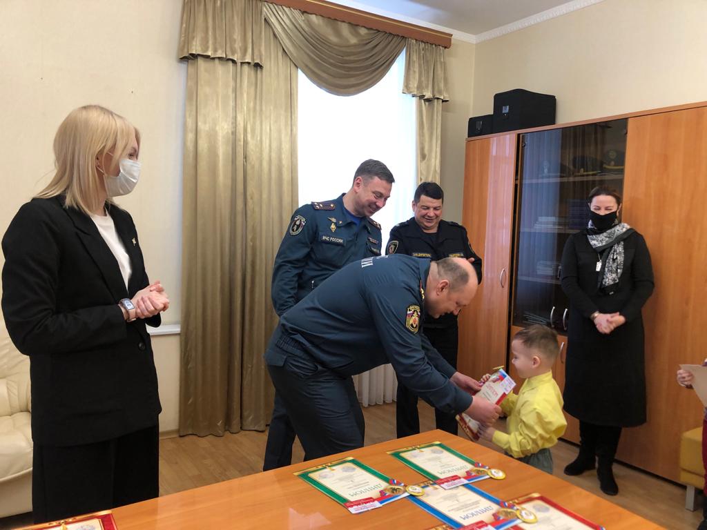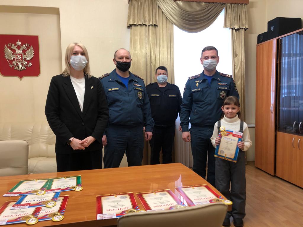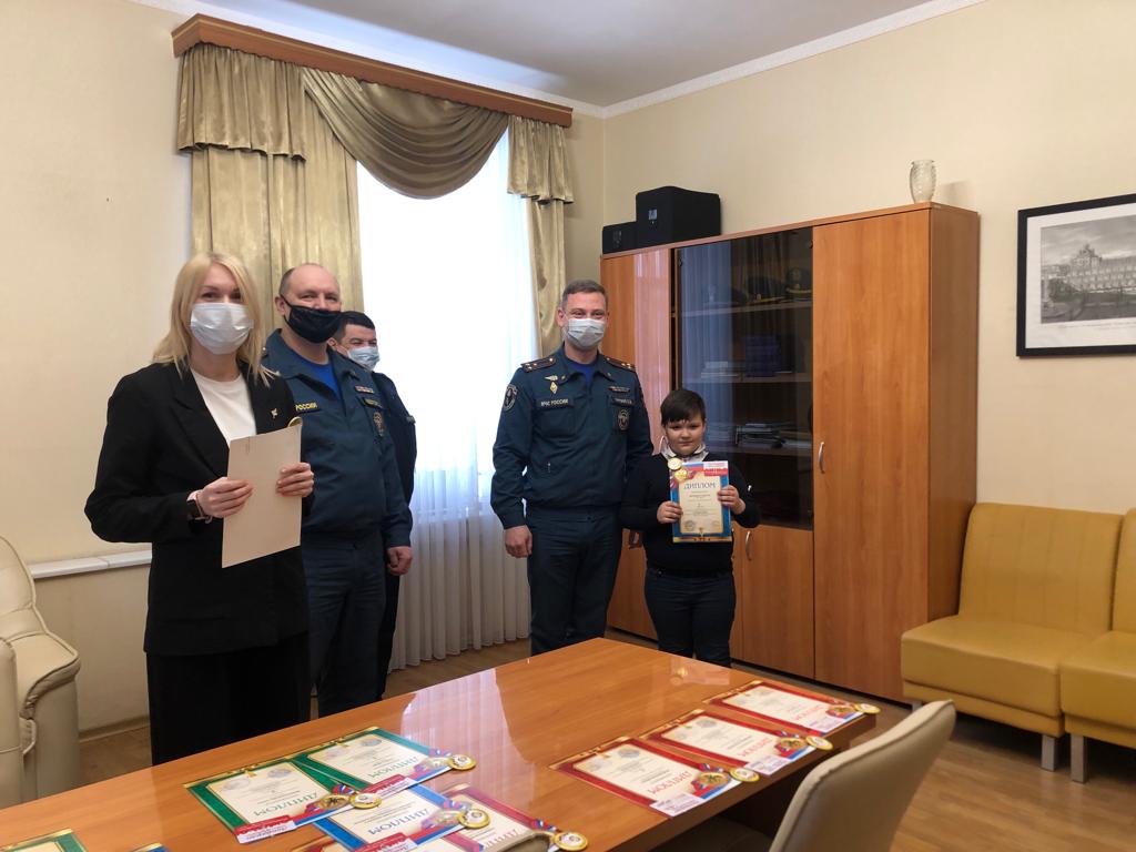 21 призер в трех номинациях «Художественно-изобразительное творчество», «Декоративно-прикладное» и «Технические виды творчества» получили подарки и дипломы. Начальник управления – С.И. Федоров, заместитель начальника – Курский Д.В., представители ВДПО и ДЮЦ «Петергоф»– Одарченко Н.В., Петрунина О.Н., заместитель директора ПСО – Гизатуллин А.Н. поздравили каждого финалиста, пожелали творческих успехов, а участникам, которые заняли 1 место – победы в Городском этапе конкурса.