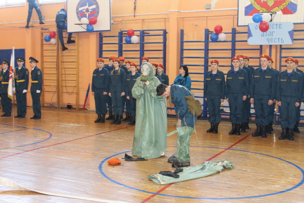 После чего кадеты устроили показательные выступления для гостей, собравшихся в зале, продемонстрировали навыки и умения по самоспасению, применению средств индивидуальной защиты, сборке– разборке автоматов, медико-санитарной подготовке.