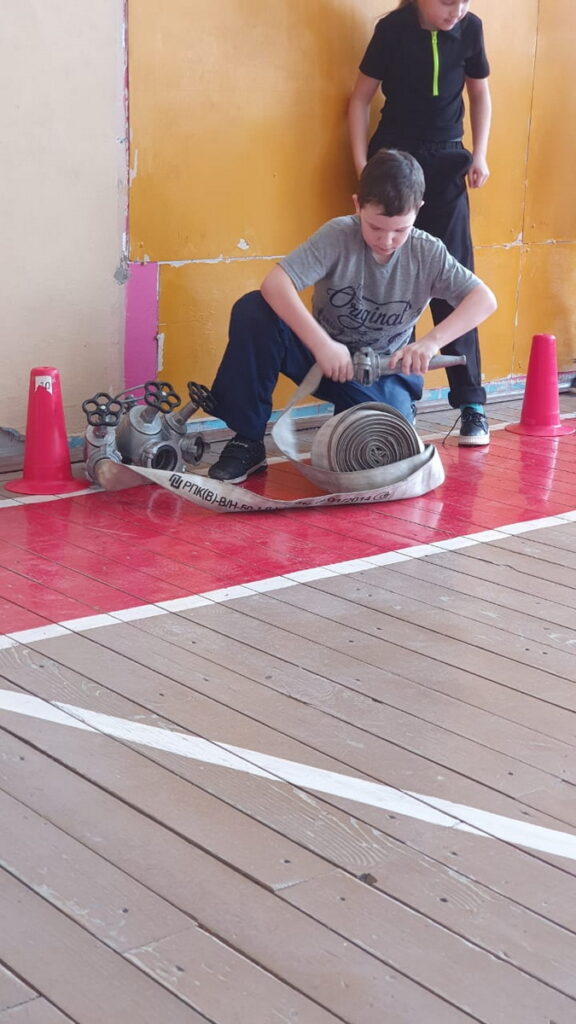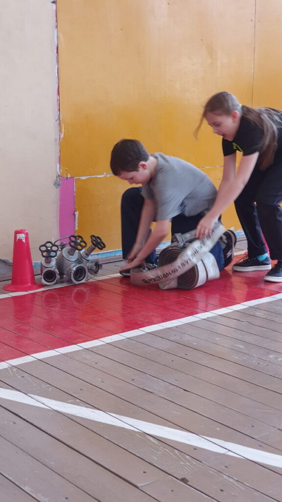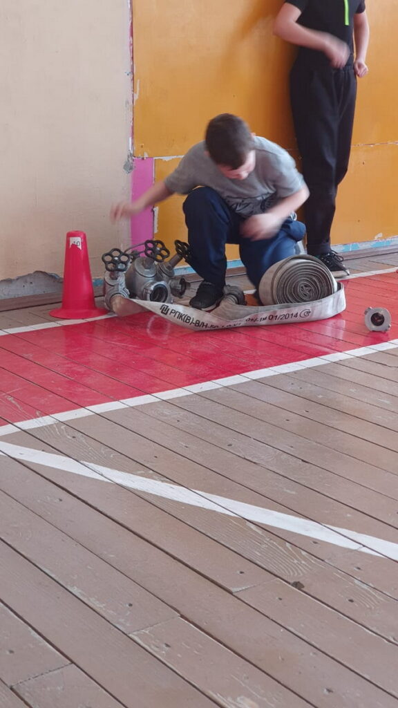 В апреле месяце в Колпинском районе будет проведен районный этап городских соревнований по программе Международного комитета по предупреждению и тушению пожаров (СТIF) среди дружин юных пожарных образовательных учреждений. В соревнованиях примут участие 22 команды ДЮП из 17 школ района. Некоторые школы представят по 2 команды. Так, например, школа № 452 выставляет две команды ДЮП. И чтобы победить в этих соревнованиях команда проводит ежедневные тренировки.  В проведении этих тренировок им помогают работники местного отделения ВДПО и ПСО. Ребята вяжут пожарные узлы, прокладывают рукавную линию и выполняют силовые упражнения.