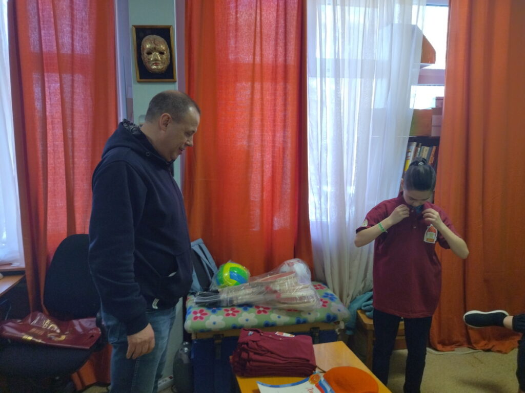 И в это раз Константин Николаевич пришел, чтобы вручить награды самым активным пожарным дружины, ребята получили мячи ракетки для бадминтона, а главное футболки с символикой ДЮП.