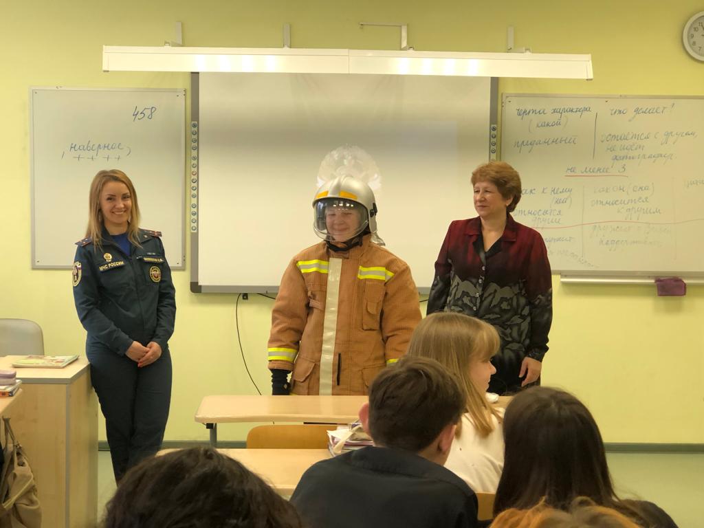 Для детей начальной школы спасатели показали видеоролик «Правила поведения в общественных местах», рассказали о причинах возникновения пожара, проверили знания по пожарной безопасности с помощью викторины «Действия в случае возникновения пожара в школе». Старшеклассники посмотрели видеофильм «Профессия – спасатель», повторили алгоритм действий вызова экстренных служб, участвовали в викторине «Знатоки пожарной безопасности». Каждый участник мероприятия примерил куртку из комплекта боевой одежды и каску пожарного и принял участие в фотосессии с представителями пожарной охраны.