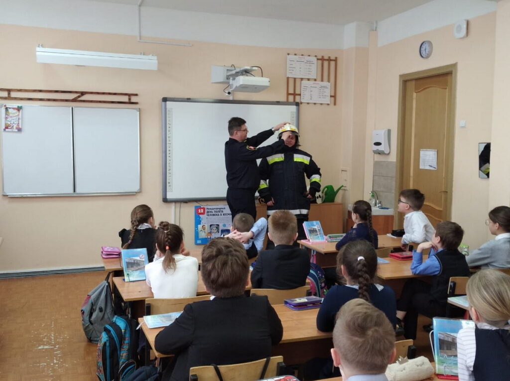 Так 14 апреля 2022 года представители, пожарно-спасательного отряда и местного отделения ВДПО провели урок безопасности с учащимися 461 школы. Ребятам рассказали о героической профессии пожарного, каждый из них почувствовал себя в роли спасателя, примерив на себя боевую одежду пожарного. Особе внимание детей обратили на соблюдение правил пожарной безопасности и недопустимости баловства с открытым огнем, чтобы им самим не стать причиной пожара.