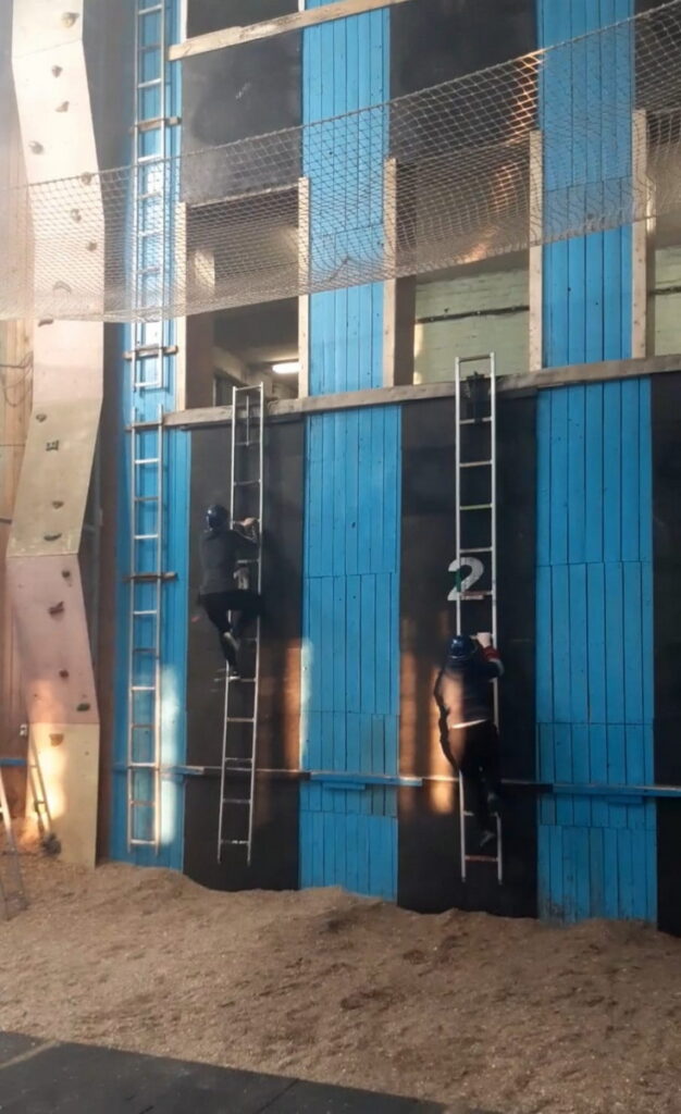 Команда тренировалась по преодолению 100 метровой полосы с препятствиями, прокладку рукавной линии и подъем по штурмовой лестнице на второй этаж учебной башни.