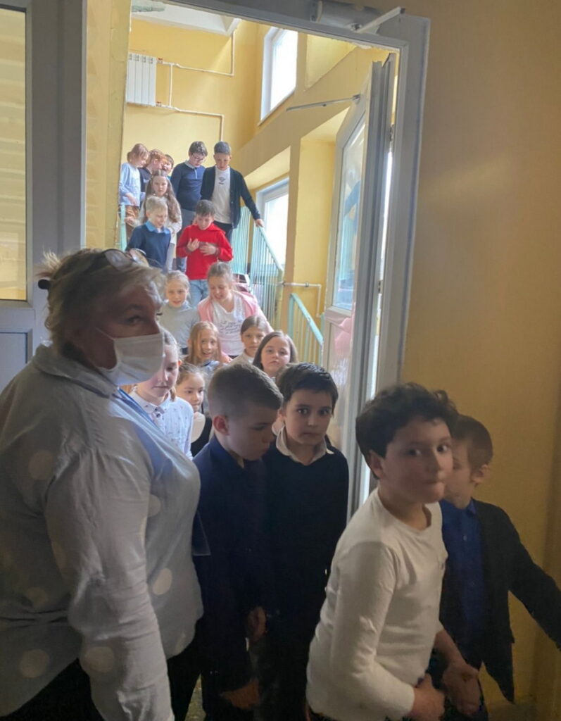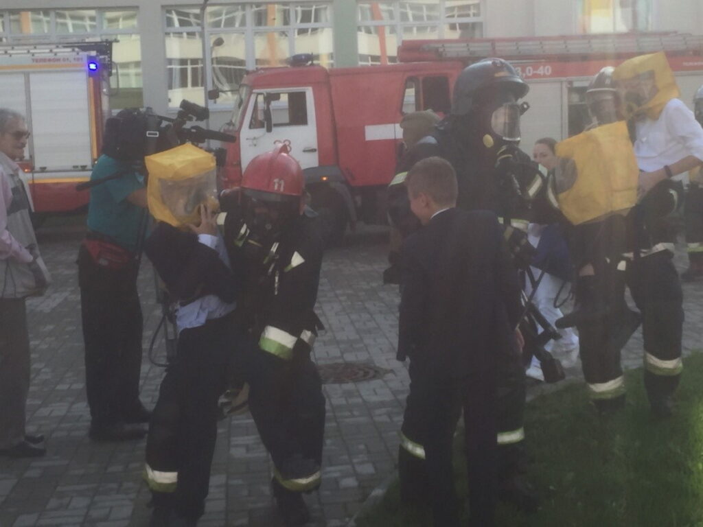 В течение пяти минут более 1000 человек успешно покинули здание школы. После того, как все вышли, учителя провели перекличку и доложили о численности детей.