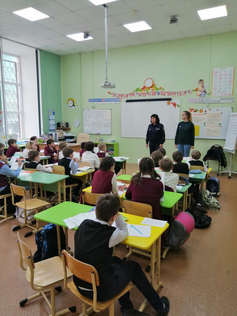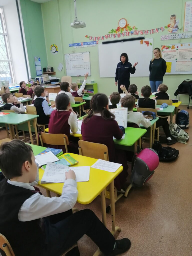 В беседе принял участие 3 «а» класс, 28 детей. Специалисты Центрального отделения СПБ ГО ВДПО и ПСО Центрального района напомнили ребятам о правилах пожарной безопасности дома и на природе. Вспомнили номера телефонов экстренных служб, повторили причины пожаров и способы их тушения.