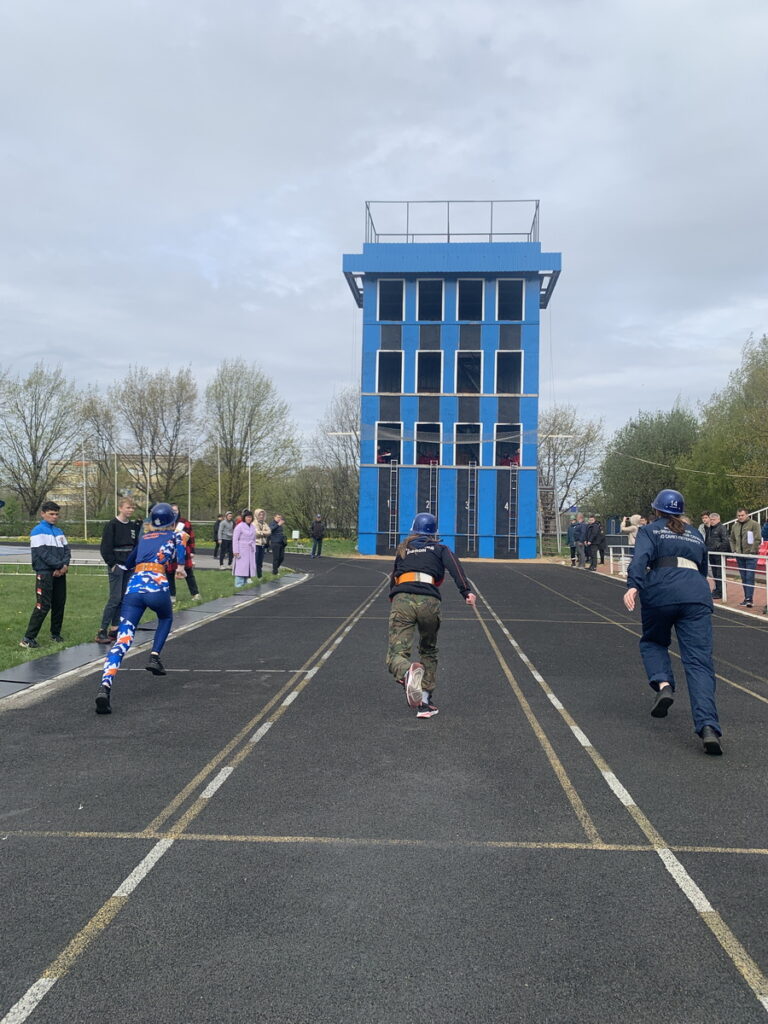Согласно положению состязаний, школьникам младшей и средней возрастных групп предстояло преодолеть 100-метровую полосу препятствий и выполнить подъем по штурмовой лестнице в окно 2 этажа учебной башни.