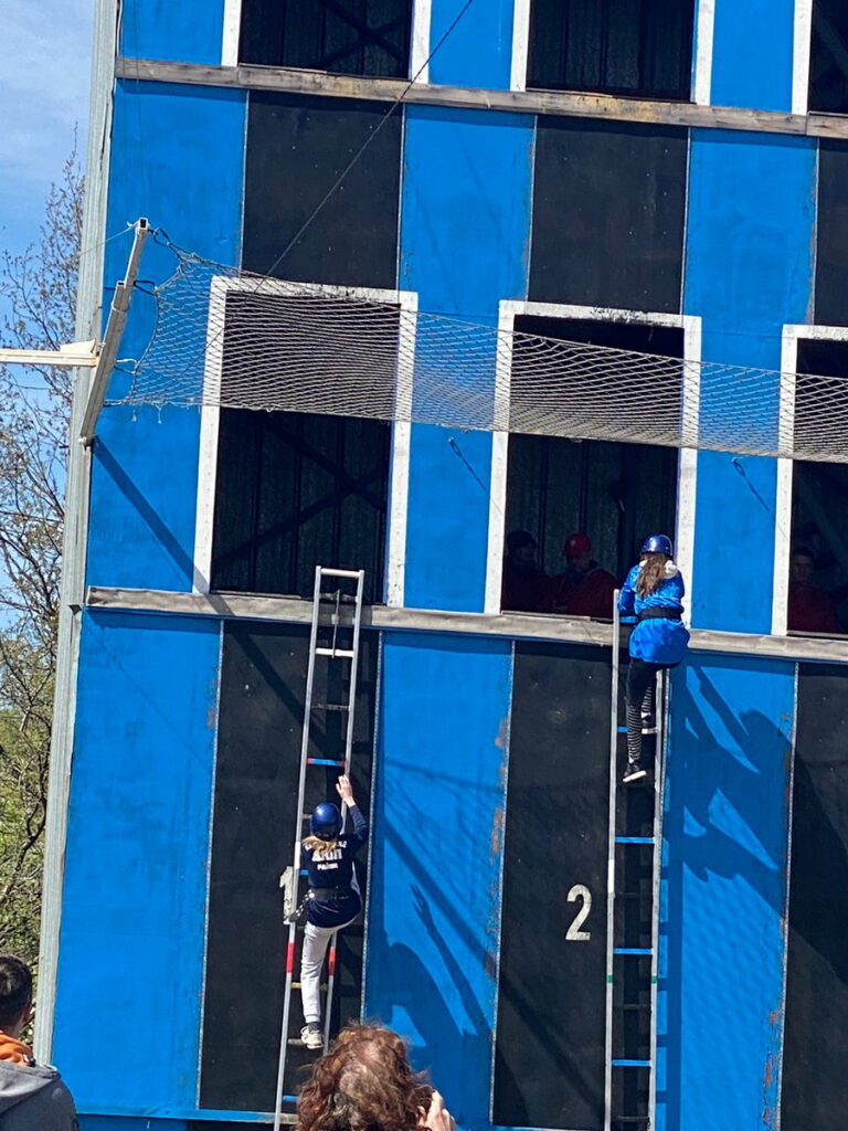 Калининский район представляли юные пожарные ГБОУ СОШ № 128 (руководитель Громова Анастасия Юрьевна) и ГБОУ СОШ № 88 (руководитель Тюрин Дмитрий Анатольевич). В соответствии с программой соревнований ребятам предстояло преодолеть 100–метровую полосу препятствий, подъем по подвешенной штурмовой лестнице в окно второго этажа учебной башни.
