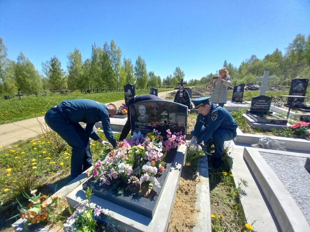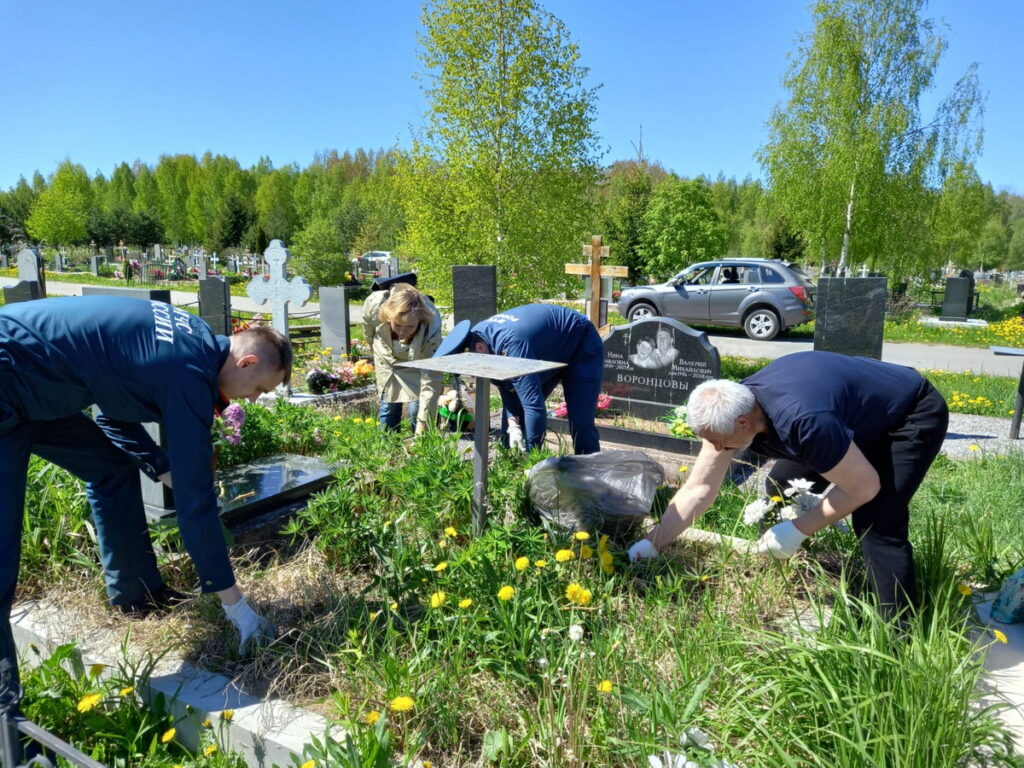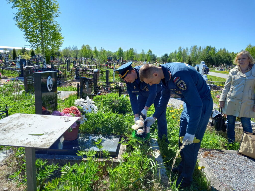 Сотрудники МЧС России – Красавин Д., Иванов А., очистили от сухой травы могилы ветеранов войны – Леонтьева А.И., Полякова Л.И. На всех могилах ветеранов, включая ветеранов пожарной охраны Петродворцового района —  Бредихину Л.Н., Беляеву Т.С., Артемьеву Г.Д., Буракова В.В., Пирогова П.Д., Хайбуллина Р.С., Давыдова С.И. обновили искусственные цветы и высадили многолетние.