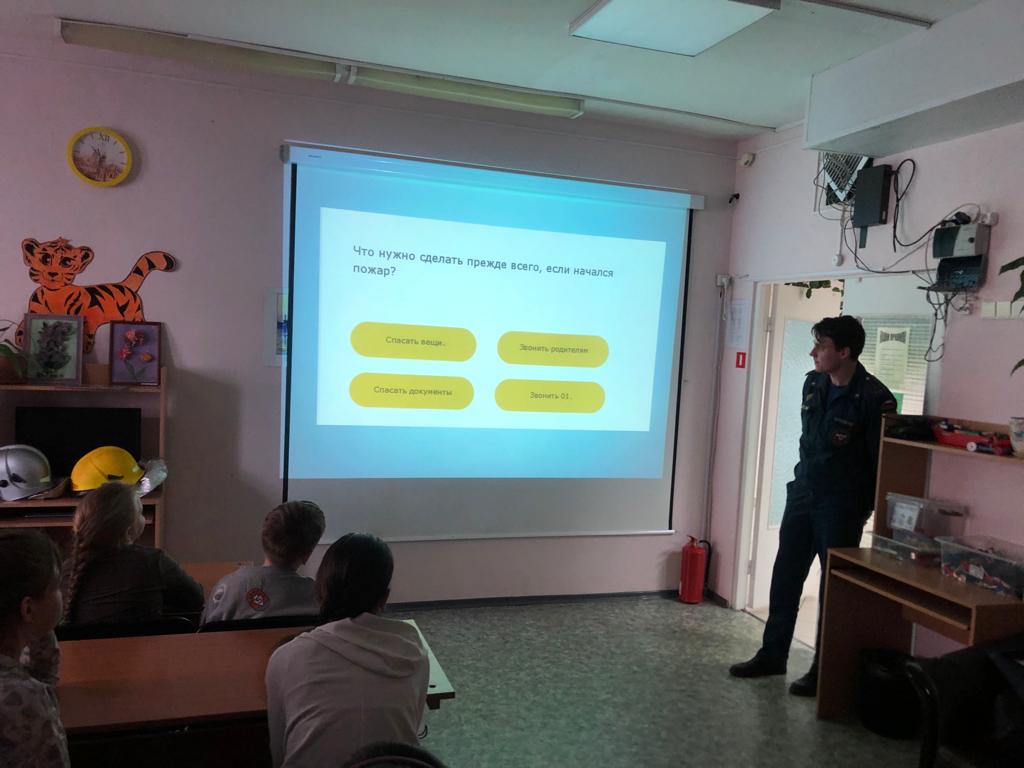 Спасатели продемонстрировали видеоролик «Правила пожарной безопасности в общественных местах» — команды «Огнеборцы» ГБОУ СОШ № 567, проверили знания детей в викторине «Действия при пожаре в школе», напомнили что шалость, может стать причиной возникновения чрезвычайной ситуации, повторили номера вызова экстренных служб. Воспитанники, с радостью, участвовали в примерке боевой одежды пожарного. В завершении мероприятия вручили наглядную агитацию и сладости для чаепития.