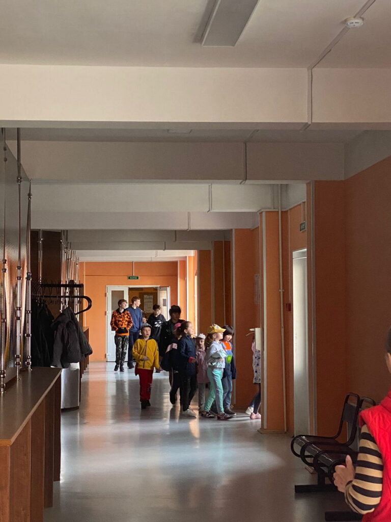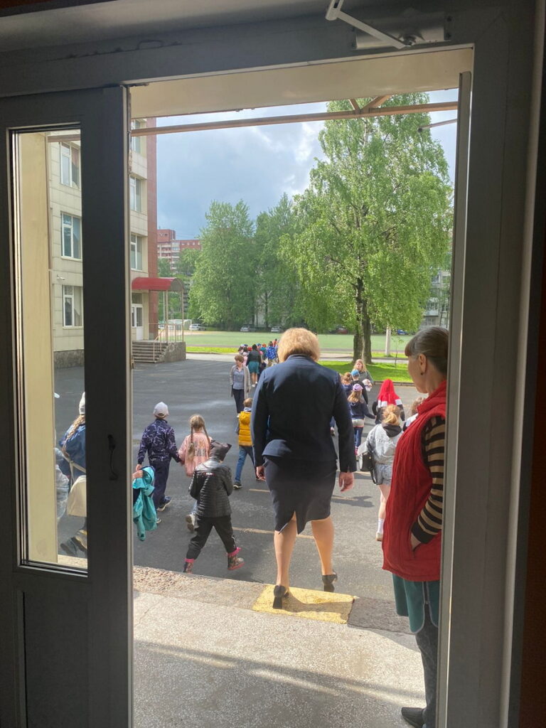 В 10 часов 20 минут после срабатывания речевого и звукового оповещения, незамедлительно началась эвакуация детей под строгим контролем воспитателей, специалиста СОД Калининского отделения СПб ГО ВДПО и старшего инструктора противопожарной профилактики ПСО Калининского района. Во избежание пересечения потоков, эвакуация детей регулируется дежурными учителями. Детей, отдыхающих в городских оздоровительных лагерях, вывели на безопасное расстояние к месту общего сбора (спортивная площадка), провели проверку количества эвакуированных по журналам отрядов, с докладом директору летних лагерей.