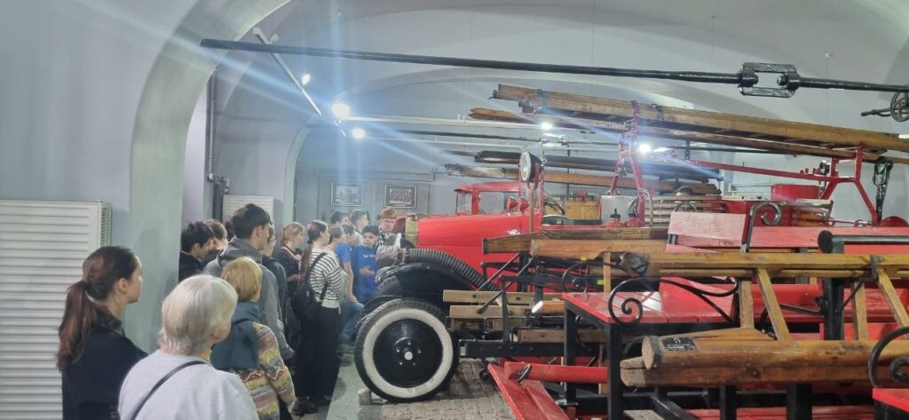 Выставка в музее наглядно демонстрирует этот путь.  Ребята своими глазами увидели подлинные экспонаты: тяжелые медные каски, которые защищали головы пожарных от ударов и осколков, элементы пожарного обоза –  этот зрелище заставляло вообразить, каким трудным был путь пожарных к месту возгорания.  Они трогали ручные насосы, представляя, сколько сил и выносливости требовалось для тушения пожара при помощи этих простых, но необходимых инструментов.  Впечатляющим был паровой насос –  символ технического прогресса в пожарном деле того времени.  Экспозиция показывает прототипы современных противогазов – вуаль Винклера и аппарат Кенига, наглядно демонстрируя, как люди старались защитить себя от удушливого дыма.