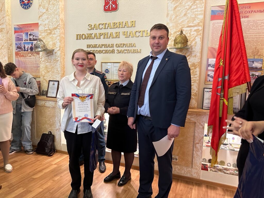 В мае 2025 г. в Пожарно-спасательном отряде № 14 Московского района Санкт-Петербурга, по адресу: Санкт-Петербург, ул. Московский проспект д. 116, состоялось награждение победителей и участников районного этапа конкурсов детского творчества «Неопалимая Купина», «Огонь без_опасности» «Человек доброй воли»
