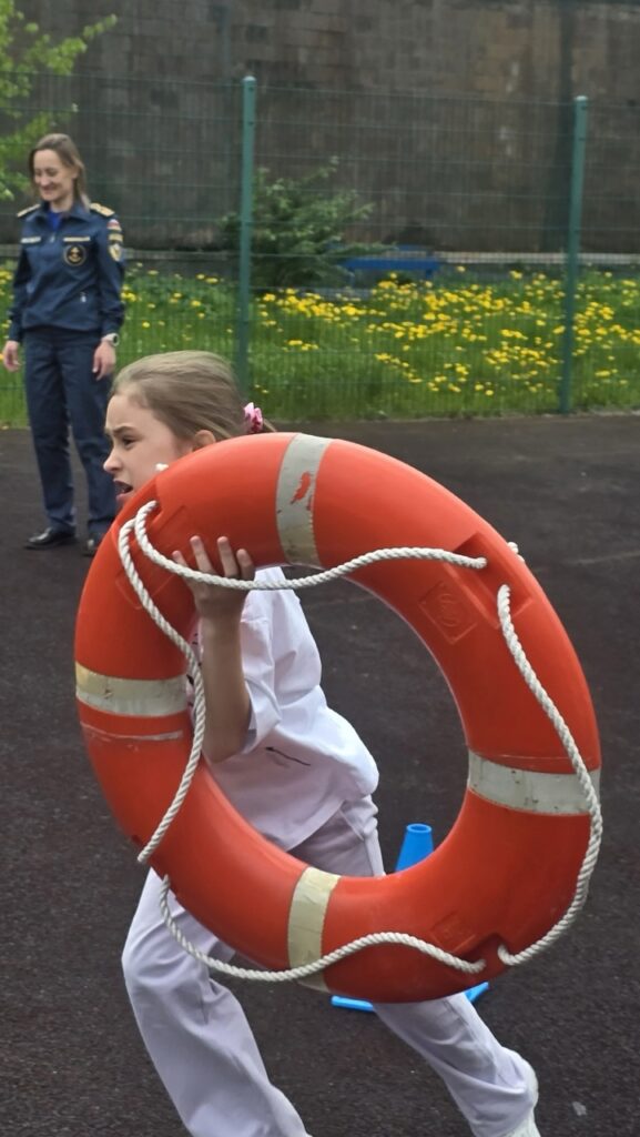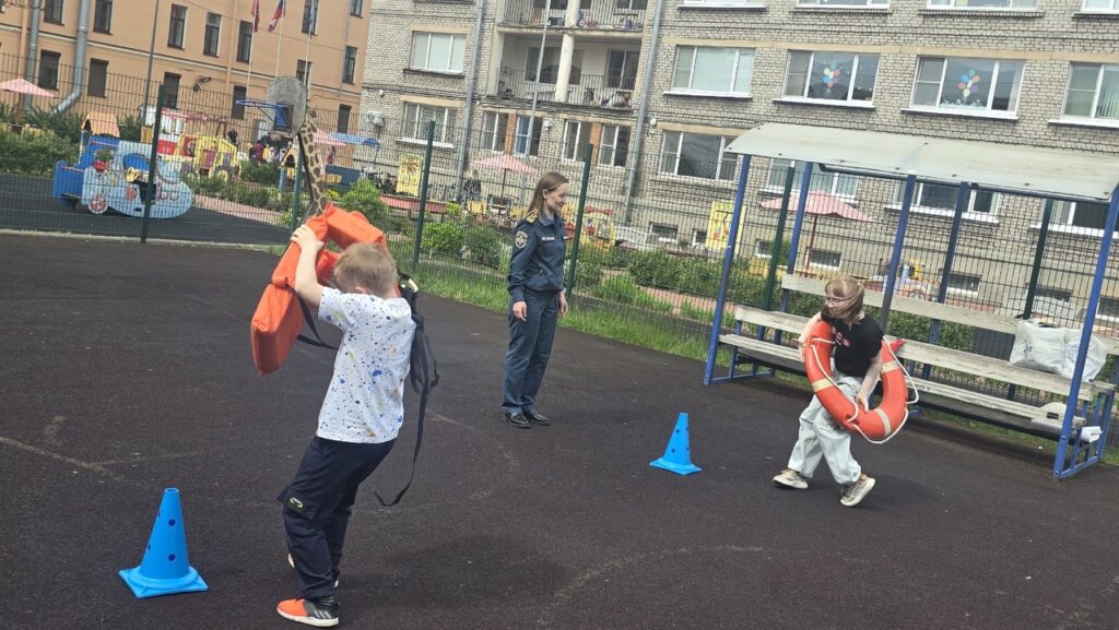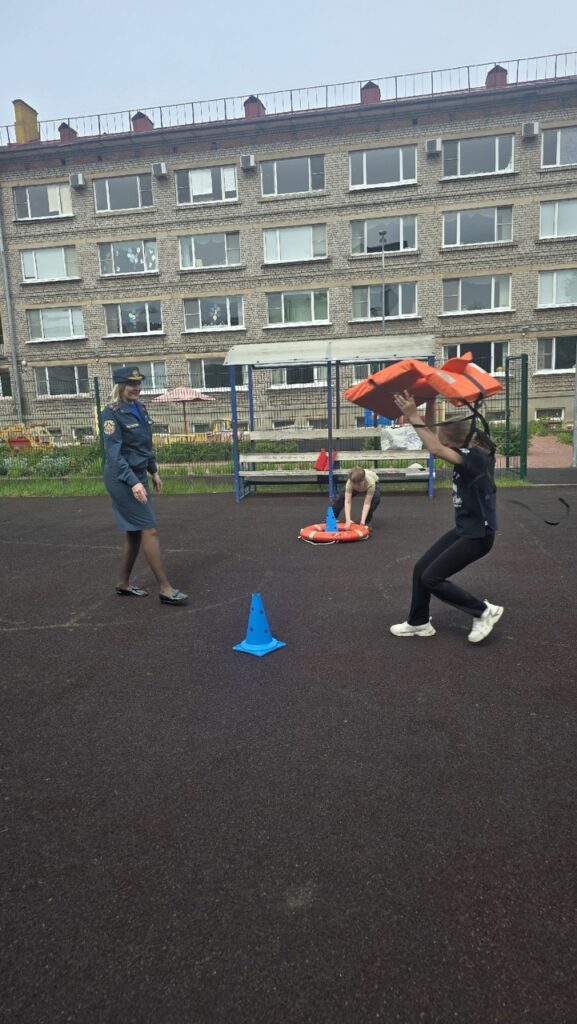 В детском оздоровительном лагере «Островок» была организована игра по станциям, на которых ребята «отрабатывали» вопросы безопасности, как на суше, так и на воде. Отдыхающим воспитанникам детского лагеря предстояло направить свое мастерство на скорость и ловкость. На время дети надевали спасательный круг и жилет, на другом этапе переносили воду, пытаясь не разлить не капли. На этапе пожарная безопасность ребята учились применять первичные средства пожаротушения – огнетушители и с пожарного ствола потушить имитированный очаг пожара.
