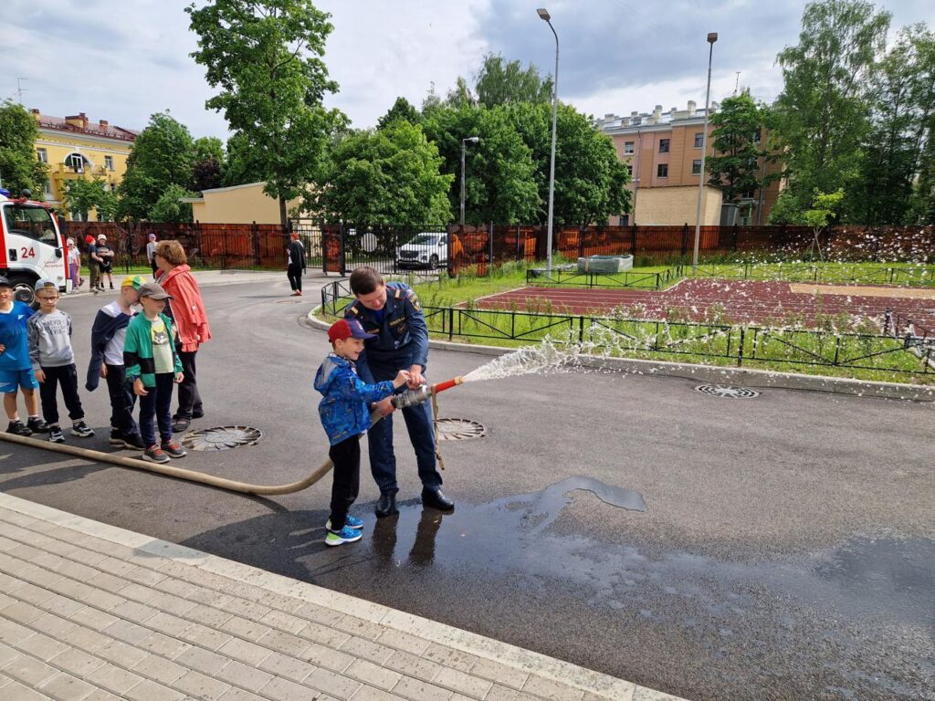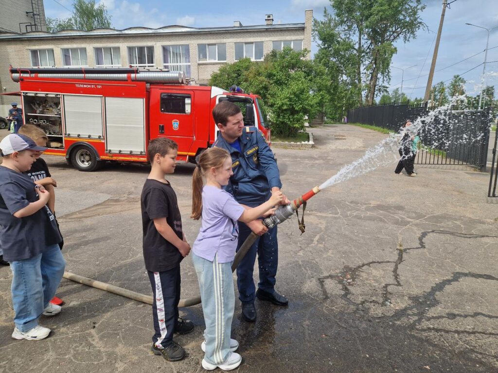 Интерес и восторг у участников мероприятия вызвал приезд пожарной машины. Дети смогли лично попробовать подачу воды через ствол с проложенным пожарным рукавом.