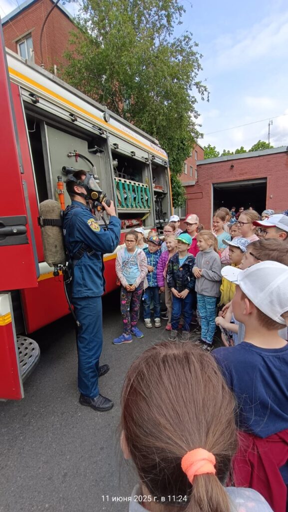 Как думаете, можно ли за один день оказаться в кабине пожарной машины, примерить боевую каску и подержать настоящий дыхательный аппарат? У 1-го отряда лагеря пшколы №608 это получилось — и всё благодаря экскурсии в Пожарную часть №19, которая прошла 11 июня.