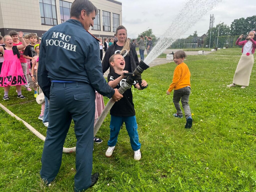 Путешествие детей в мир спасателей в лагере «Лукоморье» СОШ № 417 г. Ломоносов и лагере “Веселые ребята” СОШ № 319 в г. Петергоф началось с проведения пожарной эстафеты. Команды летних лагерей придумали названия команд: «Огнетушитель», «Искорка», «Пожарная машина», «Лучший Огнетушитель”. При прохождении этапов соревнования дети отгадывали номер вызова службы спасения и виды пожарного оборудования, используемого при тушении пожаров, учились надевать боевую экипировку пожарного (куртку и каску), а также проявляли ловкость и сообразительность в игре «Пожарные пятнашки».