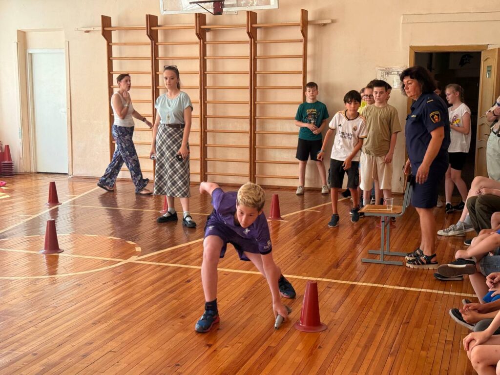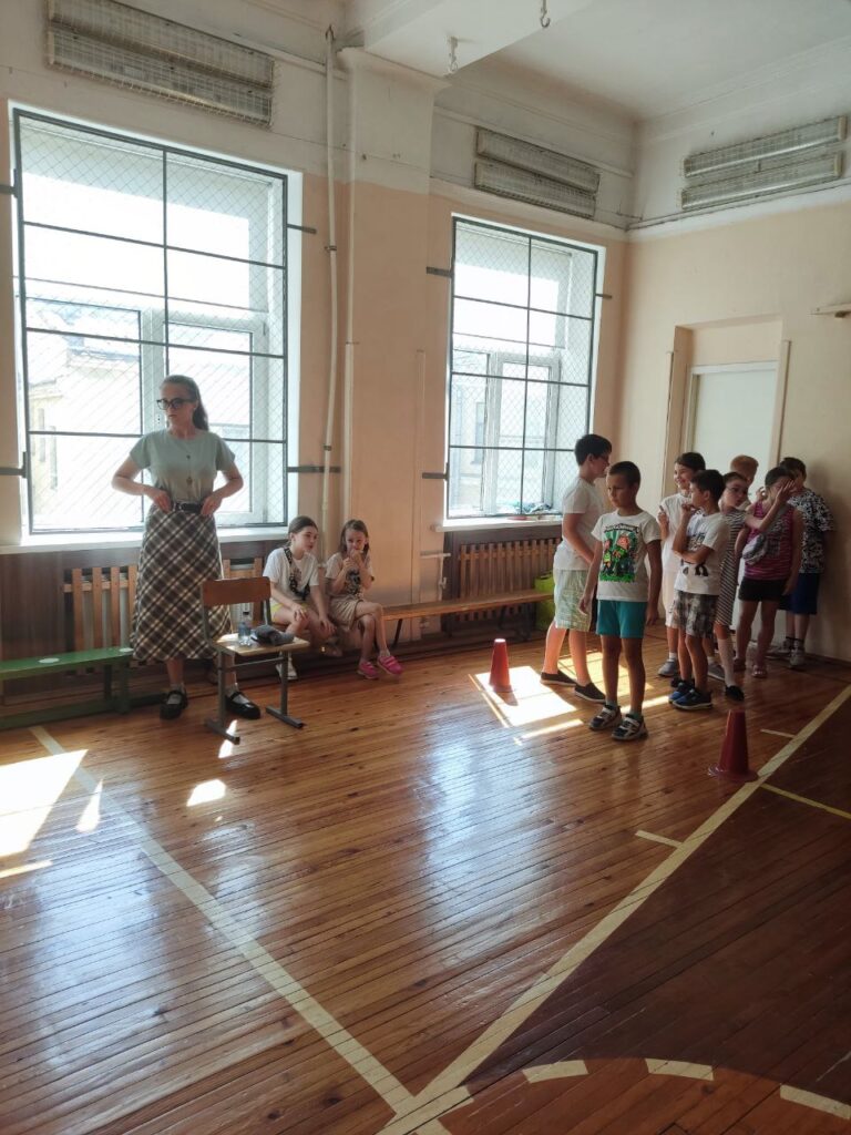 После эвакуации все дружно переместились на следующий этап «Пожарная эстафета», в которой приняли участие по 10 человек от отряда, показав все свои силы и умения, а именно, смогли условно вызвать пожарных, «потушить» песком очаг пожара и переместить пожарный инвентарь.