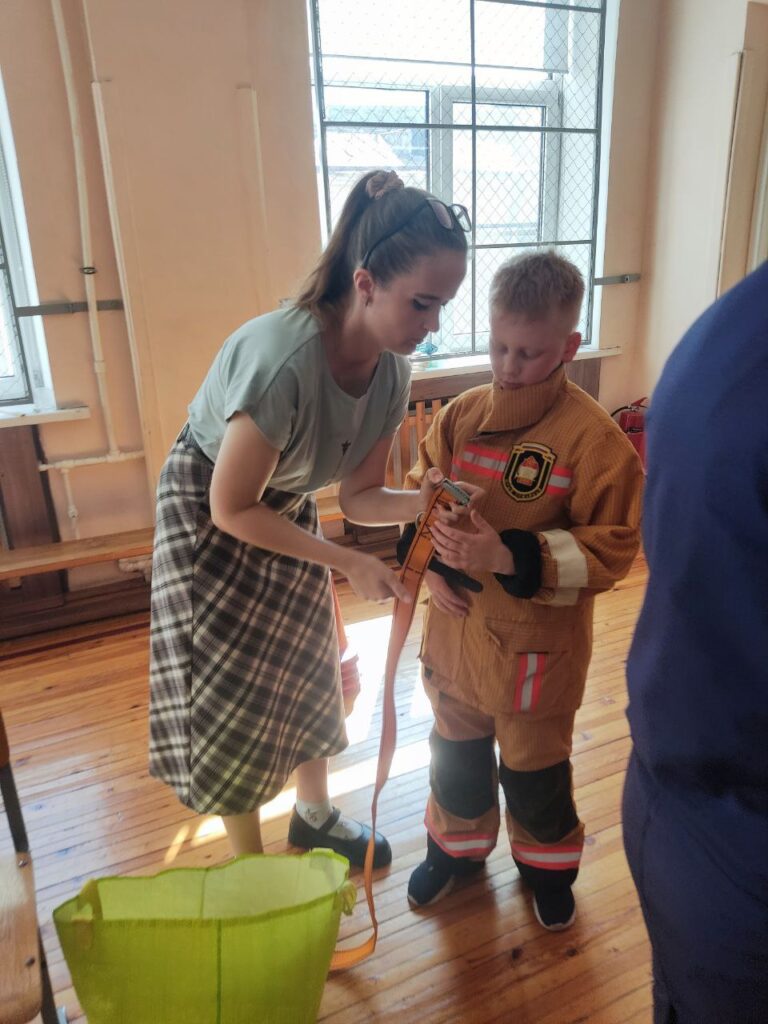 В завершении мероприятия прошел «Конкурс капитанов», где по одному человеку от отряда смогли надеть боевую одежду пожарного на время. Каждый получил грамоту и подарок.