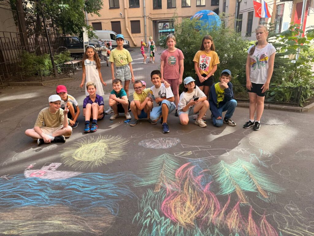 Далее каждый отряд продемонстрировал свои навыки в творческом конкурсе рисунков на асфальте. Темами стали: пожароопасный период в лесу и спасение на воде. Получились очень яркие и красочные работы.