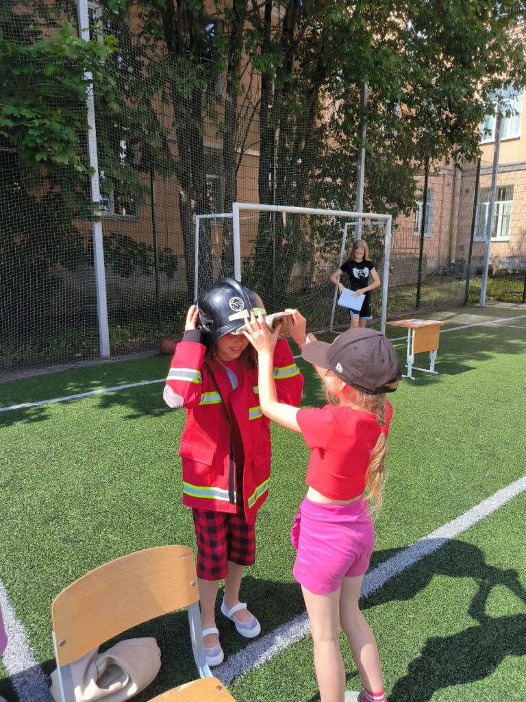 Для детей организовали Пожарные эстафеты, которые состояли из разнообразных заданий: от логических загадок, до «спасения пострадавших».