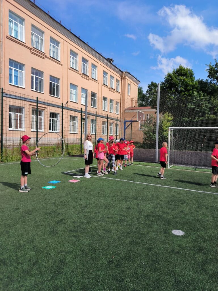 Мероприятие проходило на свежем воздухе на школьном стадионе.