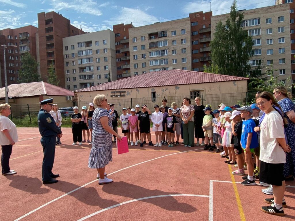 В первый день открытия 3 смены лагеря дневного пребывания детей “Парус”, работающего в августе на базе школы 418 Кронштадта, специалисты пожарной охраны провели тренировочное занятие по эвакуации детей из здания в случае возникновения пожара, с целью ознакомления воспитанников с объектом и открытый урок безопасности.