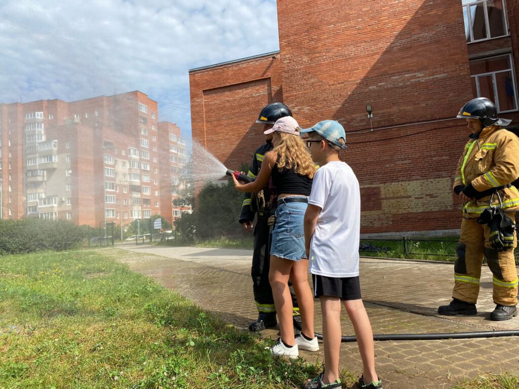 Дети получили не только теоретические знания, но и практические умения, необходимые для обеспечения личной безопасности. Ребята смогли почувствовать себя огнеборцами, ведь им представилась возможность примерить боевую одежду пожарного и опробовать подачу воды из пожарного ствола.
