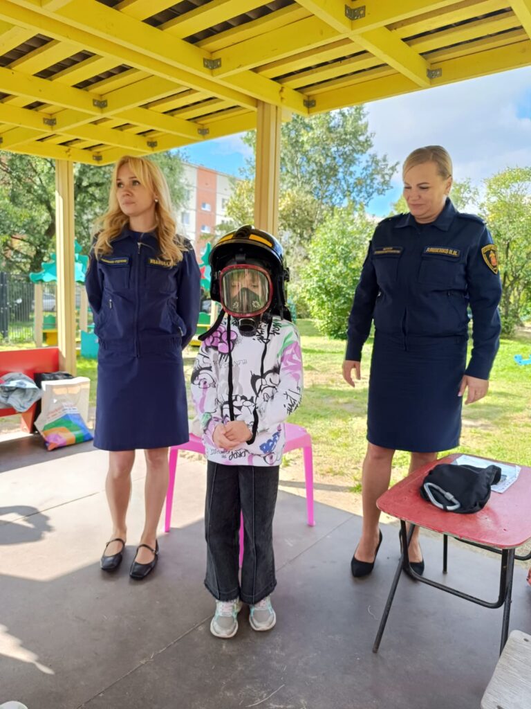После беседы о пожарной безопасности специалисты ВДПО и ПСО предоставили малышам возможность примерить на себе средства индивидуальной защиты, которыми пользуются пожарные (каска, защитная маска). Детей очень вдохновила героическая профессия Пожарный, они восхищались и задавали разнообразные вопросы.