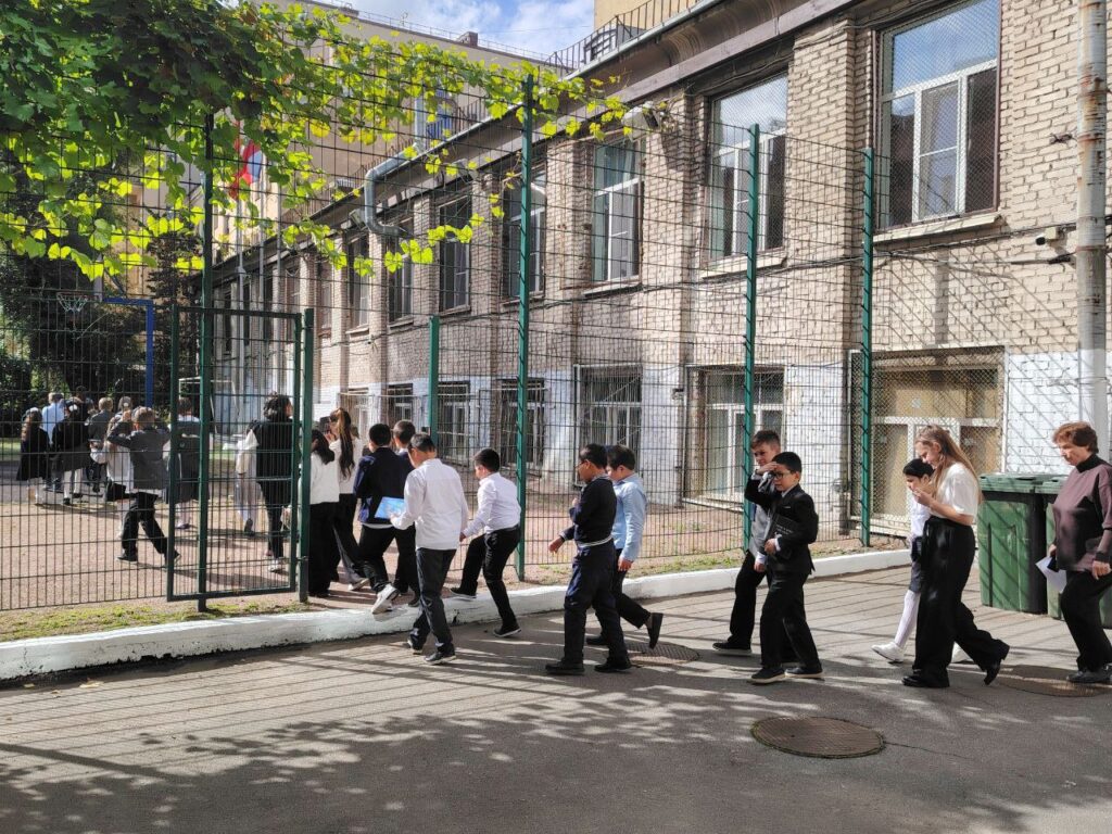 В ходе мероприятия проведен противопожарный инструктаж и беседа с детьми и педагогами по соблюдению правил безопасности. Все классы справились быстро и правильно.