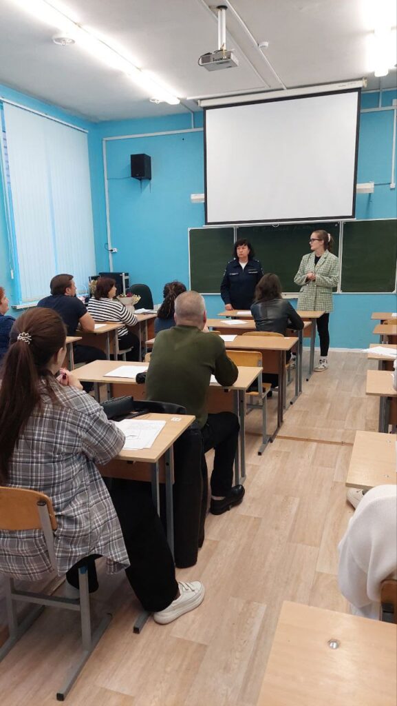 Главной целью, с которой организуются тренировочные эвакуации, является выработка навыков поведения и способности быстро принимать решения в чрезвычайных ситуациях, находить правильный путь до запасного выхода. Практические навыки поведения можно приобрести только в процессе тренировок. Также в этой школе 4 сентября прошли родительские собрания, и специалисты местных ВДПО и ПСО провели беседы с родителями, особо внимание выделив теме пожарно-спасательного спорта и различным соревнованиям на пожарную тематику.