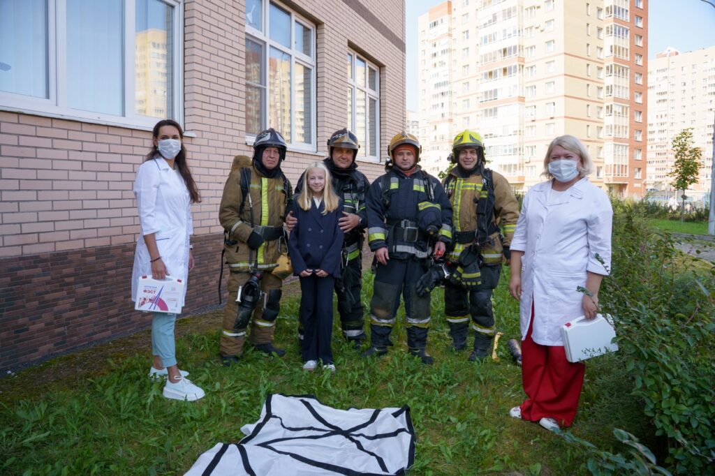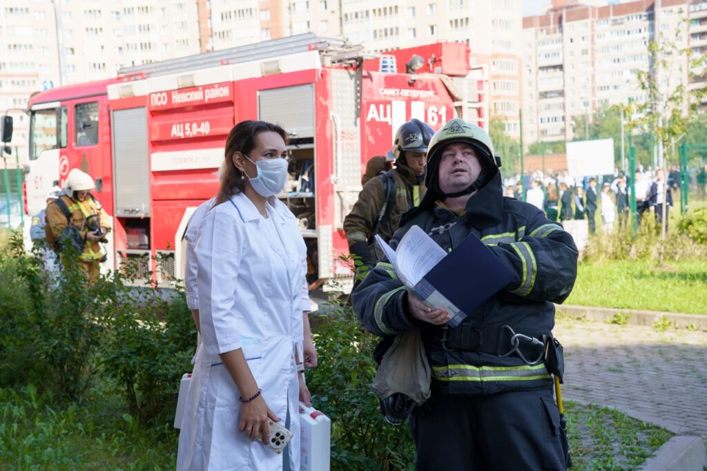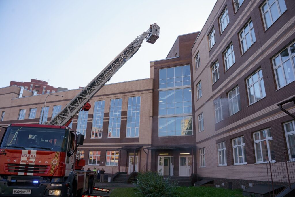 10 сентября 2025г. в школе № 691 Невского района г. Санкт-Петербурга проведена показательная тренировочная эвакуация детей и сотрудников образовательного учреждения с привлечением пожарной техники. Для реалистичности тренировки был использован театральный дым. По легенде учений в 11 час. 15 мин. в кабинете 220 на 2-м этаже здания произошло возгорание. Сработала пожарная сигнализация. Услышав звук системы оповещения учителя незамедлительно начали эвакуацию детей. Из здания были эвакуированы учащиеся, педагоги и работники школы, о чем доложили директору школы и прибывшему на место пожарному расчету. По ликвидации условного пожара, и спасению 2-х пострадавших работали дежурные расчеты 52-й и 61-й пожарно-спасательных частей Невского района. Оказавшиеся в «ловушке» ученики просили о помощи из окон школы. Командир боевого расчета 52-ПСЧ принял решение: первое и второе звено приступили к спасению людей, а третье – к тушению условного пожара. Со второго этажа, используя дыхательный аппарат, на носилках эвакуировали пострадавшего. При помощи пожарной автолестницы, через окно 4-го этажа эвакуирован второй пострадавший. Спасенные переданы под наблюдение медицинскому персоналу. Условный пожар ликвидирован, пострадавшие спасены.