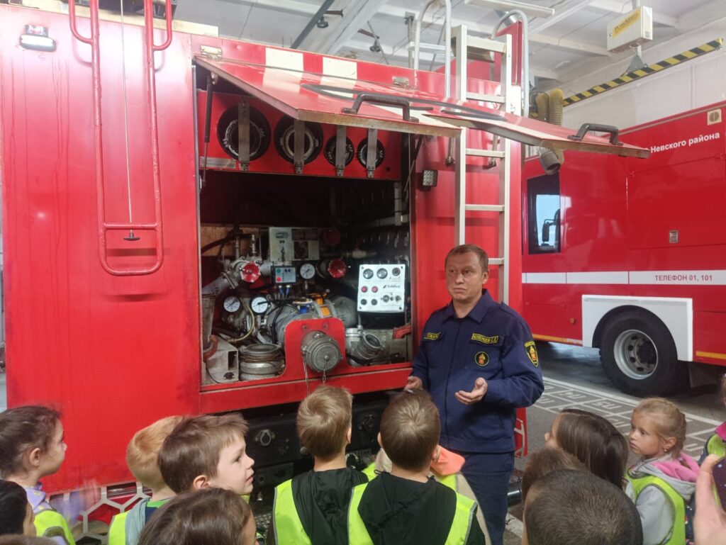 В завершении экскурсии сотрудники СПб ГКУ ПСО Невского района совместно с представителями Управления по Невскому району ГУ МЧС России по Санкт-Петербургу и Невского отделения СПб ГО ВДПО вручили памятки «Планета безопасности»».