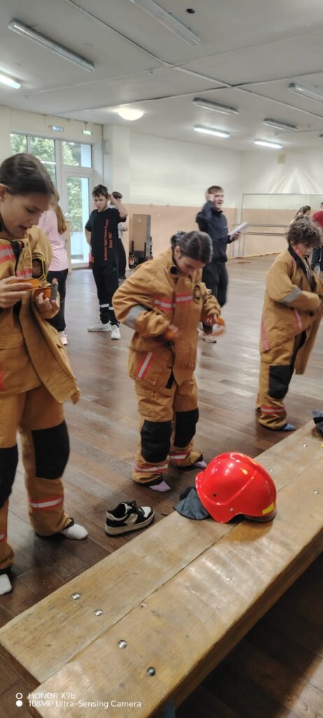 Ребята попробовали себя в роли настоящих пожарных: прокладывали рукавную линию от пожарной машины и поражали условную мишень водой.