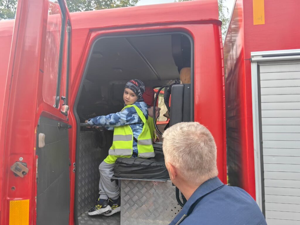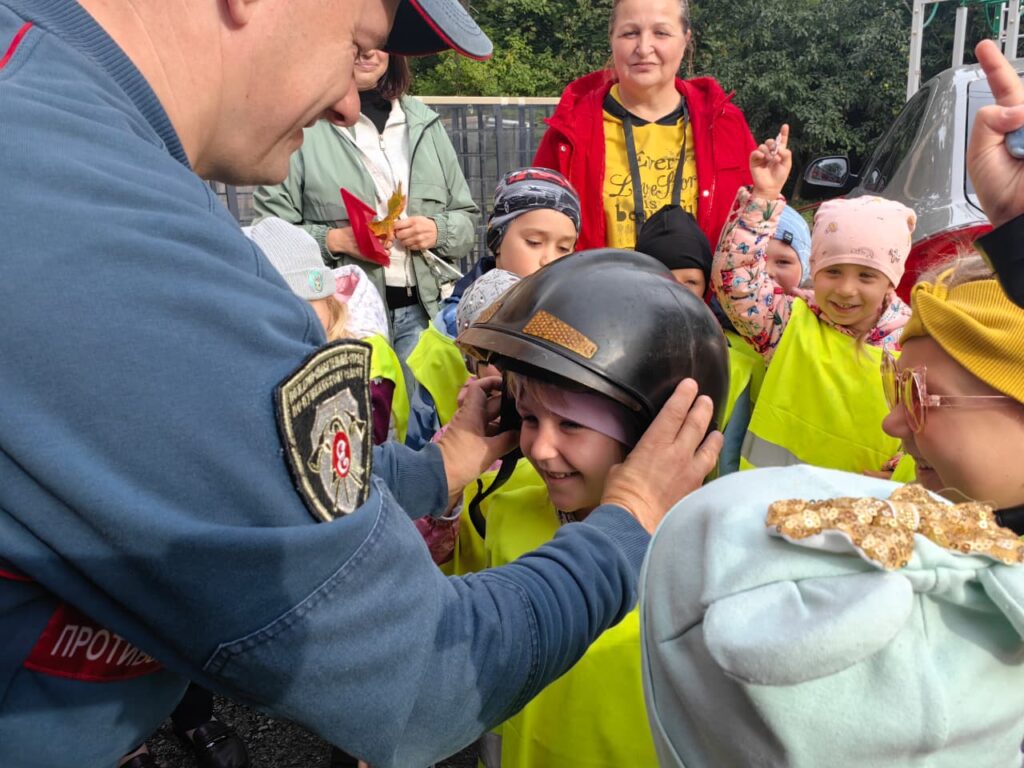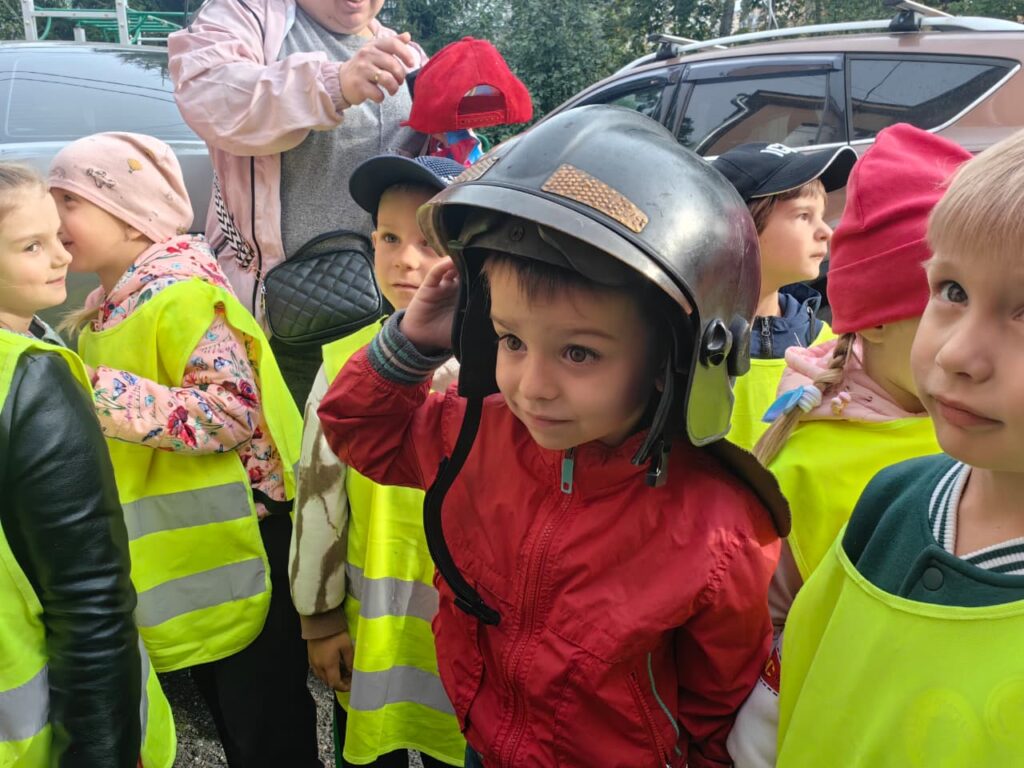 Самым интересным моментом экскурсии была возможность подержать в руках пожарное оборудование и примерить защитную форму пожарных.
